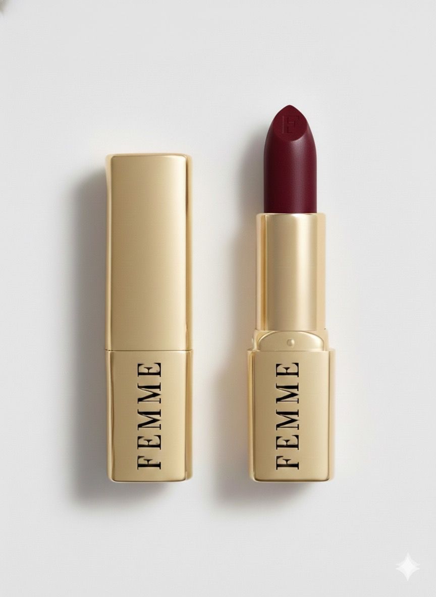 Embrace the mystery of Nocturne, a deep, seductive lipstick shade from FEMME that blends rich berry and wine tones for a bold, elegant statement. This creamy, satin-finish formula glides on smoothly, delivering intense, long-lasting color while nourishing your lips with hydrating oils and butters. Perfect for evening glam or whenever you want to captivate with confidence and sophistication.