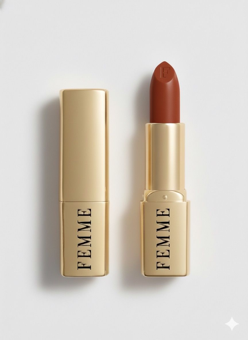 Meet Radiance, a luminous and vibrant lipstick shade from FEMME that brightens your smile with a radiant glow. Its creamy, satin formula delivers rich, buildable color while deeply moisturizing your lips for lasting comfort and shine. Perfect for making every moment shine, Radiance adds a touch of glowing sophistication to any makeup look.